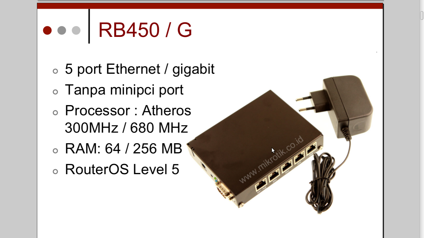 mikrotik jenis ini banyak digunakan dalam pembagi jaringan dan mikrotik ini mikrotik level 4.